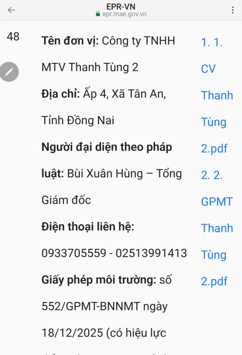 Giấy phép môi trường Số: 552/GPMT-BNNMT cấp ngày 18/12/2025