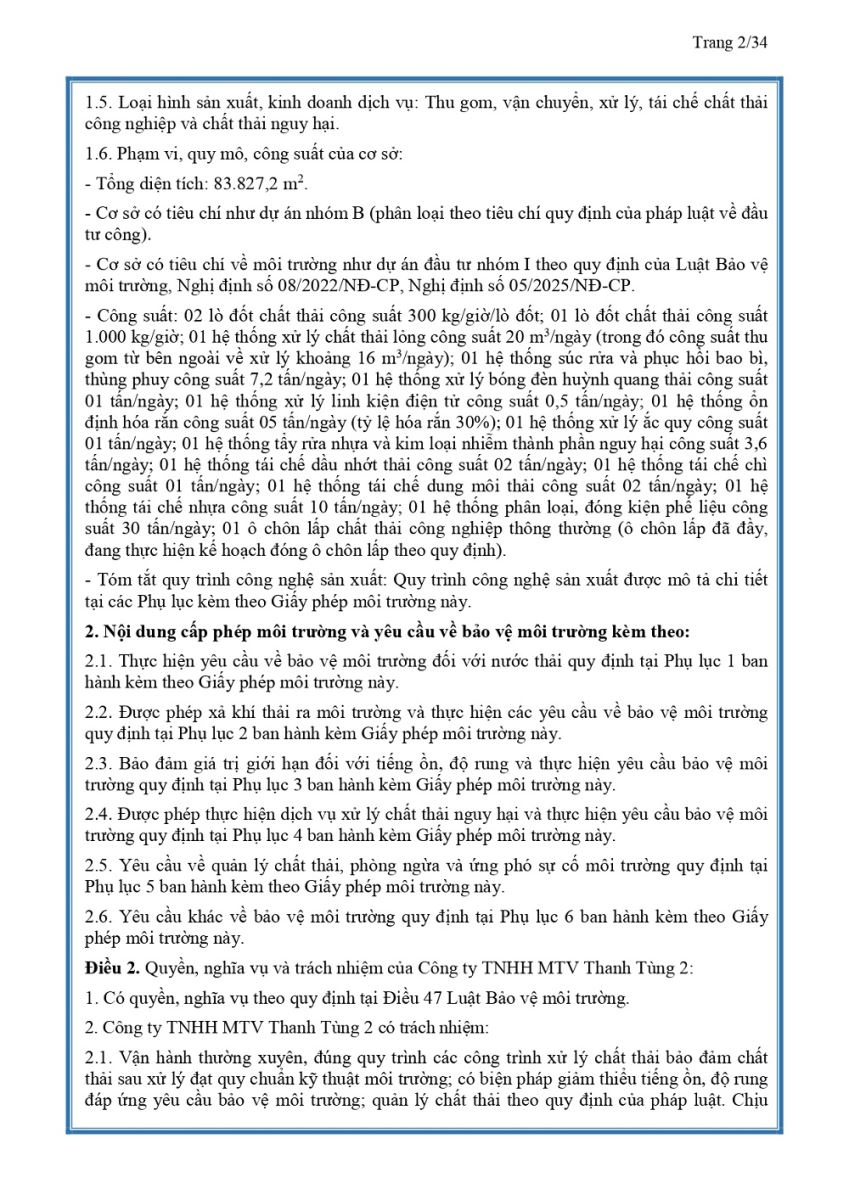 + Giấy phép môi trường số 552/GPMT-BNMT:
