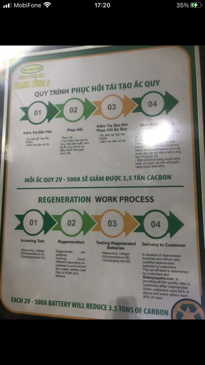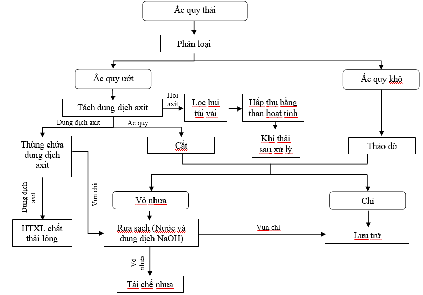 Quy trình xử lý và thu hồi ắc quy được thể hiện trong