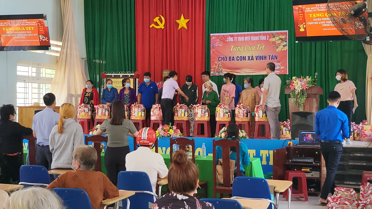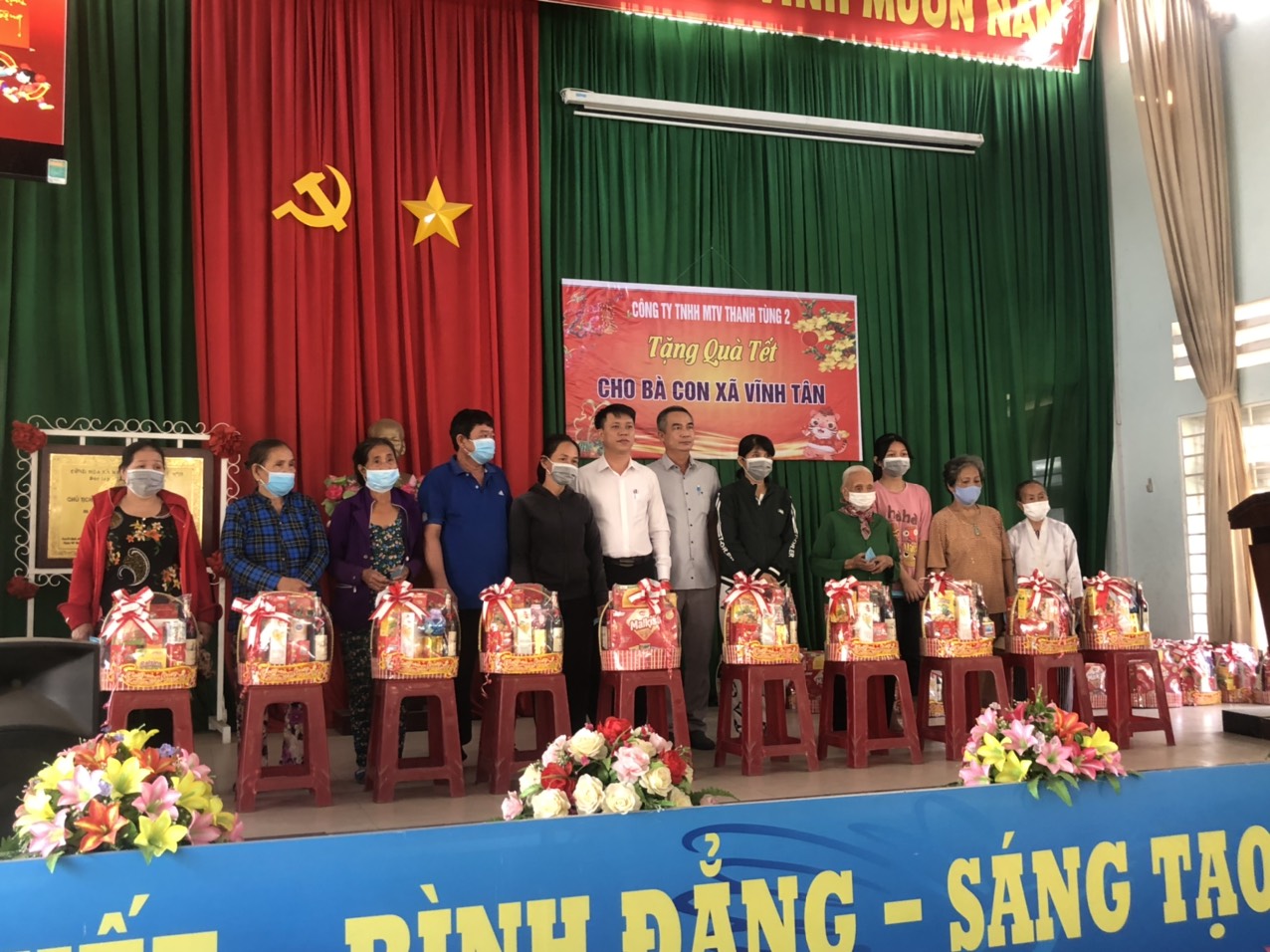 This is an annual activity organized by Thanh Tung 2 Company every year on the occasion of traditional Lunar New Year to encourage and support families in difficult circumstances during the Tet holiday, springtime. At the same time, it demonstrates the tradition of solidarity, compassion, care, and sharing of the company in taking care of the poor, households in difficult circumstances, through participation, motivating poor households to overcome difficulties and rise in life.Giving gifts to poor households in Vinh Tan commune, Vinh Cuu district, Dong Nai province: